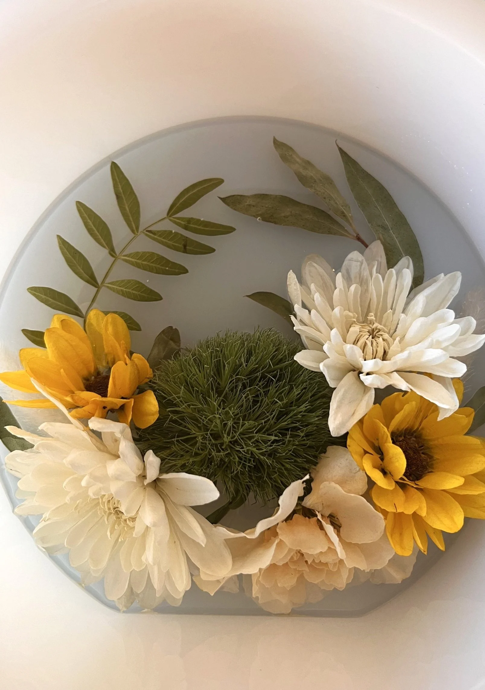 Une fois les fleurs séchées, nous les concevrons en compositions. Cette étape sera suivie par le moulage ;