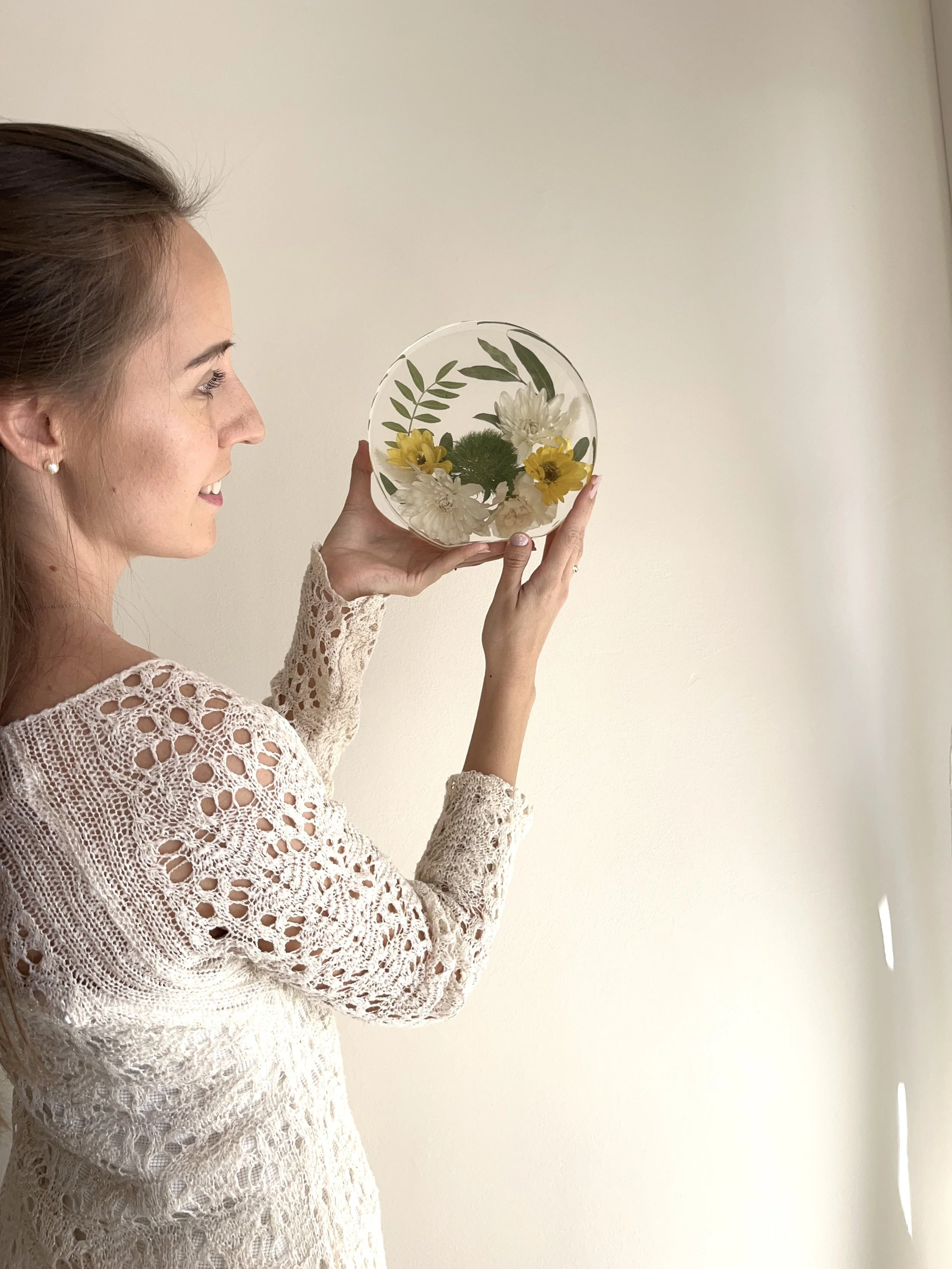Depuis toute petite, j’ai été entourée par l’univers des fleurs grâce à ma mère, qui était fleuriste. Elle m’a transmis sa passion et m’a appris tout ce qu’il y a à savoir sur ces magnifiques créations de la nature. Plus tard, je suis moi-même devenue fleuriste et je l’ai rejointe dans la décoration de mariages et d’événements spéciaux. Aujourd’hui, je combine mon amour des fleurs avec mes années d’expérience pour créer des pièces uniques en résine, afin de préserver la beauté de vos moments précieux pour qu’ils durent toute une vie.